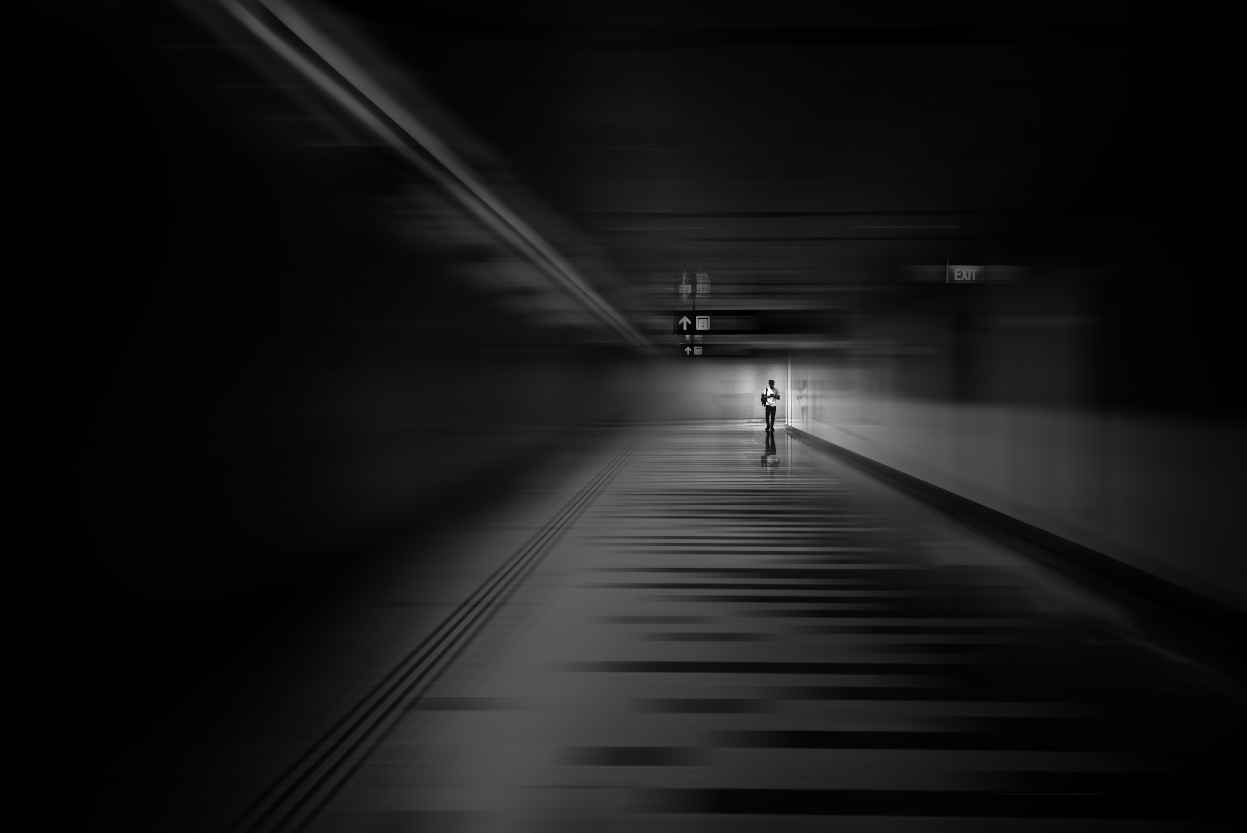 By placing people within these scenes, I can emphasize and direct the narrative while adding geometric intrigue through buildings and structures. My photographic work integrates abstract components to encourage individual interpretation by viewers.  I experiment with out-of-focus effects, different types of blur and combining multiple images to increase the level of abstraction slightly.
